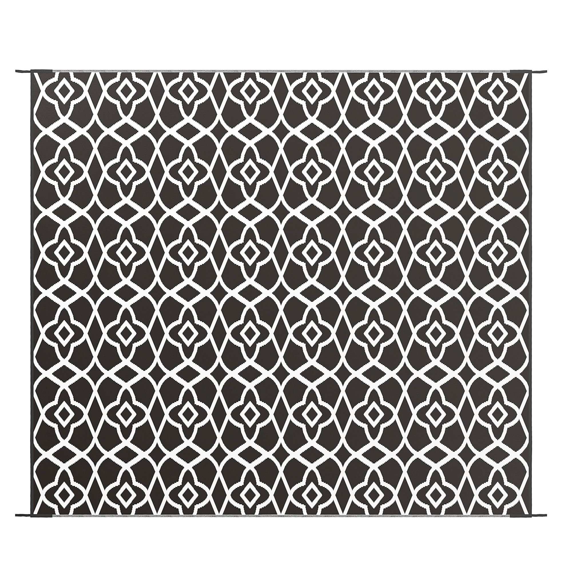 Camp on a carpet with Outsunny. This porch rug is designed to handle dirt. Outdoor-ready, our rug really cleans up fast; sweep, spray, wipe, or wave it; its powerful polypropylene fibers stay dry and don't saturate. Keep an outdoor rug in the camper, RV, or car; it's excellent for camping, beach trips, patio picnics, or anywhere outside. The color is reversible, meaning you can flip our plastic rug over for a fresh side or style. Upholster the outdoors with Outsunny.