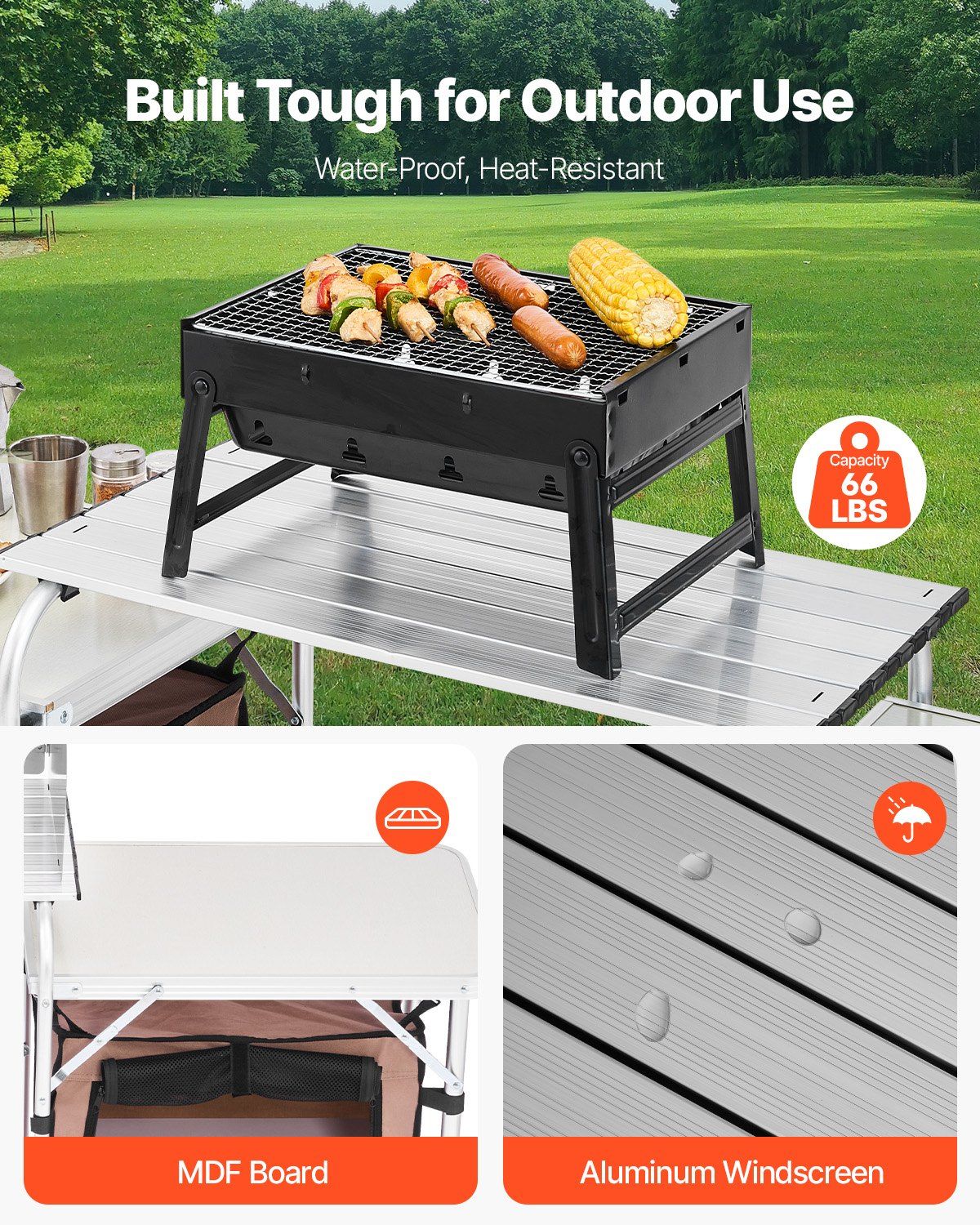 VEVOR Outdoor 2-Tier Kitchen with Zippered Bag, Portable Folding Cook Table for BBQ, Party and Camping, Brown VEVOR Outdoor 2-Tier Kitchen with Zippered Bag, Portable Folding Cook Table for BBQ, Party and Camping, Brown VEVOR Outdoor 2-Tier Kitchen with Zippered Bag, Portable Folding Cook Table for BBQ, Party and Camping, Brown